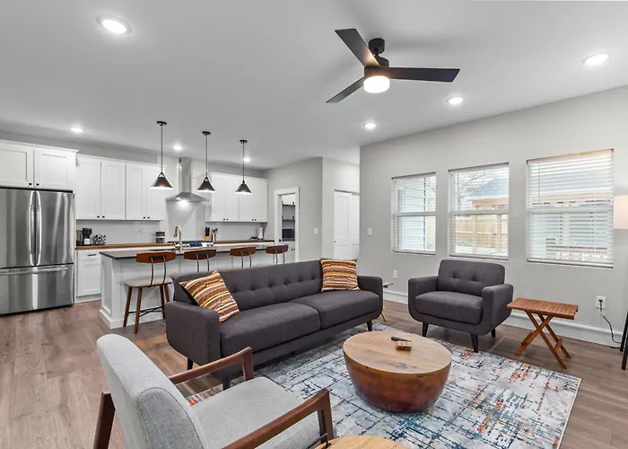 The 3-bedroom Uptown Elegant Escape | Jz Vacation Rentals Tower Grove villa offers swift access to various city sites, such as Mt. Zion Missionary Baptist Church Christian Complex, situated about a 5-minute walk away. Located 3.2 km from the Busch Stadium, this accommodation provides Wi-Fi and a car park.